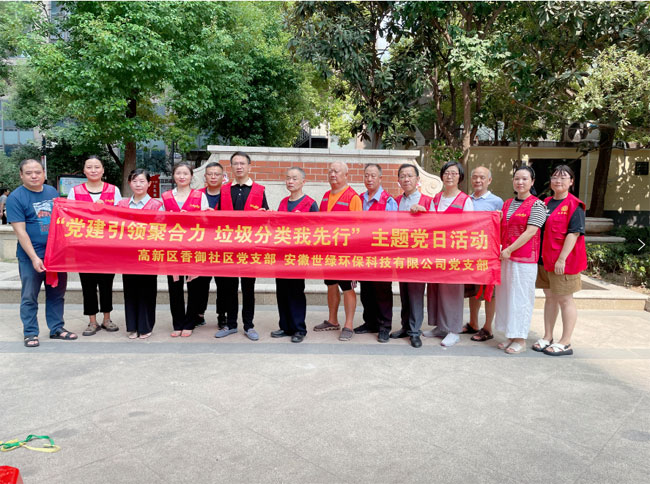 為進一步提高轄區(qū)未成年人垃圾分類和環(huán)境保護意識,倡導(dǎo)轄區(qū)居民綠色低碳生活,積極鼓勵青少年兒童主動參與到垃圾分類的行動中來;打造社企共建品牌,彰顯黨建聚合力,8月11日合肥高新區(qū)香御社區(qū)黨支部聯(lián)合轄區(qū)企業(yè)安徽世綠環(huán)保科技有限公司黨支部開展了“黨建引領(lǐng)聚合力 垃圾分類我先行”主題黨日活動。