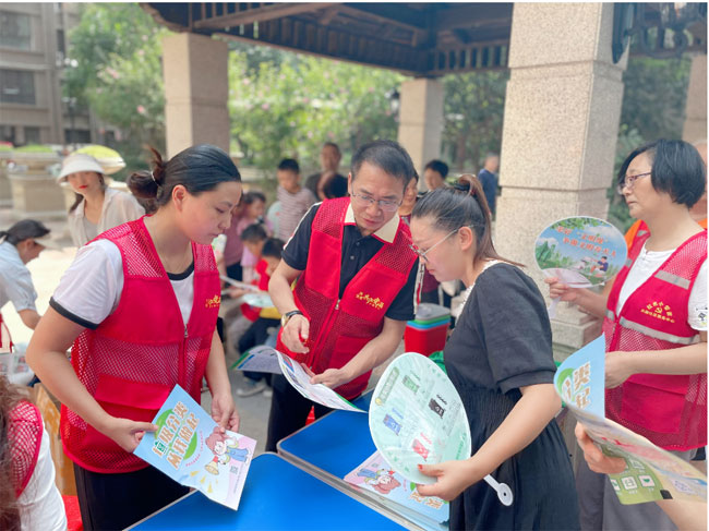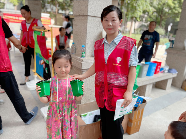 首先,黨員志愿者向社區(qū)的小朋友們介紹了垃圾四分類的標(biāo)識及顏色,并通過生動直觀的講解讓大家認(rèn)識到垃圾正確分類的重要性。志愿者們利用“分類垃圾桶”引導(dǎo)小朋友認(rèn)識“可回收物”、“其他垃圾”、“有害垃圾”、“廚余垃圾”四種分類垃圾桶,志愿者還就日常家庭生活中產(chǎn)生的垃圾,細(xì)致地講解如何將其分類,倡導(dǎo)大家做好生活垃圾分類,實現(xiàn)資源再利用。