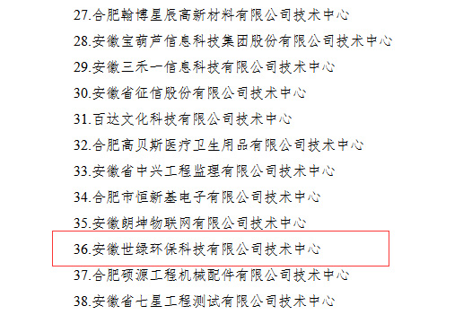 安徽世綠環(huán)保科技有限公司入選2022年合肥市企業(yè)技術(shù)中心擬認(rèn)定名單