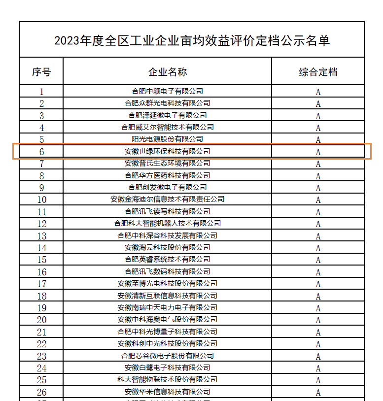 在此次評選中,安徽世綠環保科技有限公司繼續定檔為A檔。此次評選是高新區為認真貫徹落實省、市關于深化“畝均論英雄”改革的決策部署,根據《深化“畝均論英雄”改革促進制造業高質量發展的意見》、《合肥市工業企業畝均評價辦法3.0》等文件精神,并結合高新區實際進行的評選。